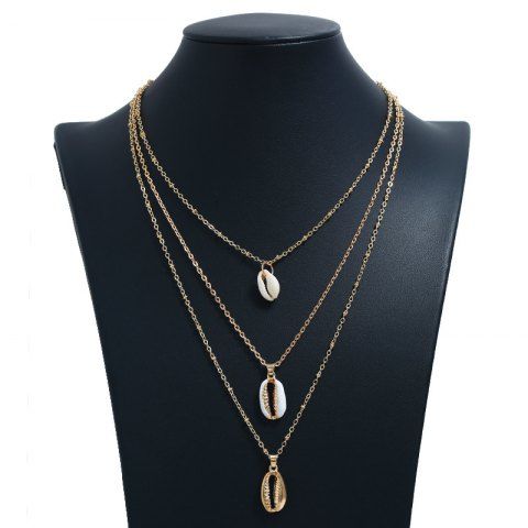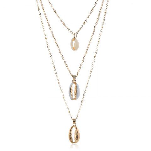 Collier Triple Couche Pendant Coquille Superposé Style Bohémien - D'or - Or