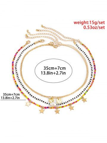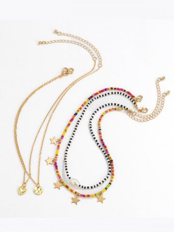 Collier Vintage Pentacle Perlé Pendant 4 Pièces - Multi - Multi