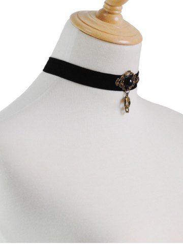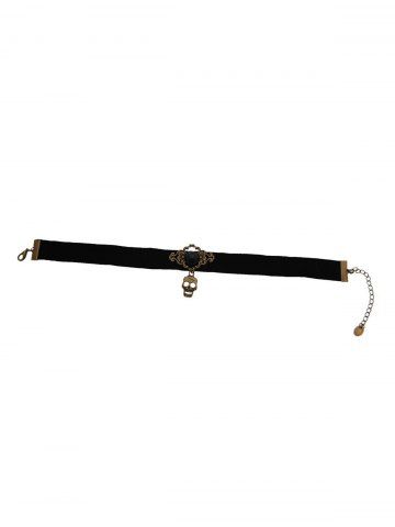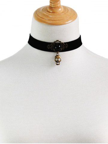 Skull Pendant Faux Pearl Vintage Choker Necklace - Noir - Noir