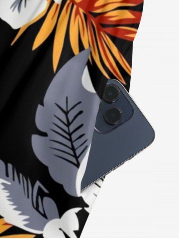 Combinaison hawaïenne à imprimé de feuilles tropicales, col en V et jambes larges - Noir - Noir
