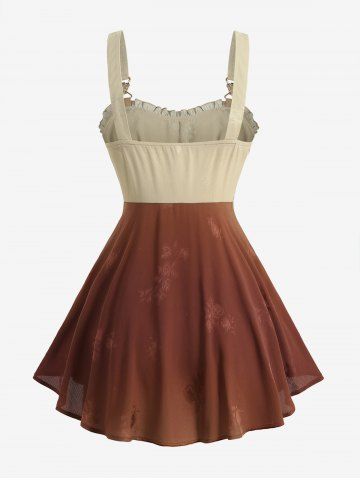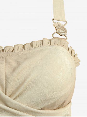 Débardeur à volants et boucle banane en jacquard à fleurs ombrées grande taille - Orange - Orange
