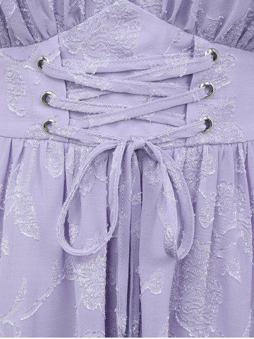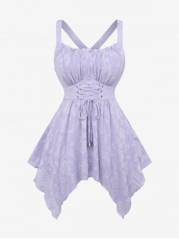 Débardeur asymétrique grande taille à lacets, œillets, volants et fronces florales en jacquard croisé - Pourpre Mimosa - 1x | Us 14-16