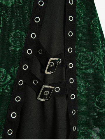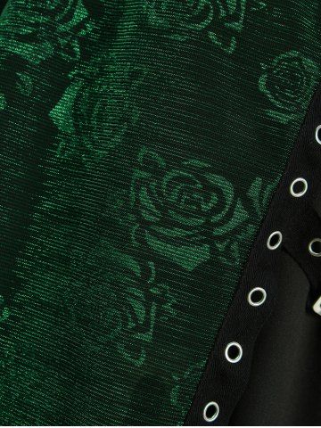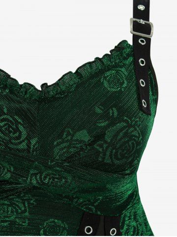 Débardeur croisé grande taille à imprimé fleur de rose, avec boucle et œillets, côtelé et superposé - Vert Profond - 4x | Us 26-28