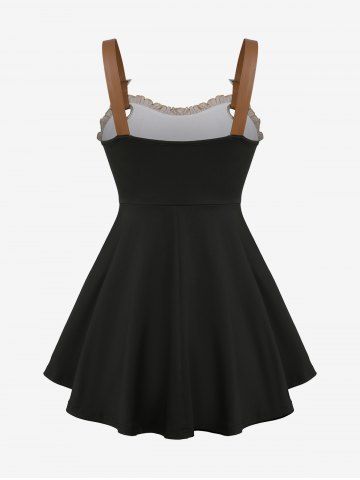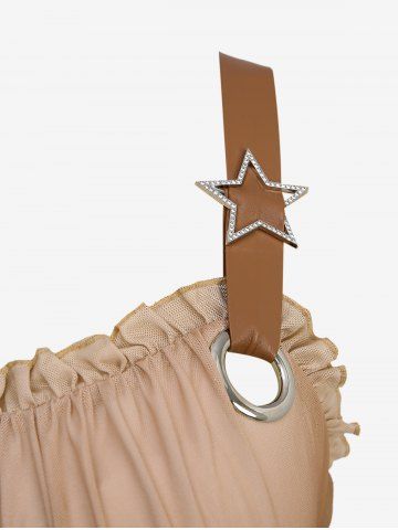 Débardeur Etoile Imprimée Ombré Bouclé de Grande Taille à Lacets à Volants - Café - Café