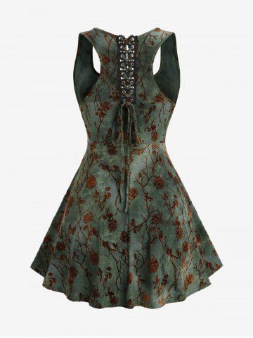 Débardeur grande taille à motif rose floqué, froncé, boucle papillon, œillets et laçage au dos - Vert Profond - 1x | Us 14-16