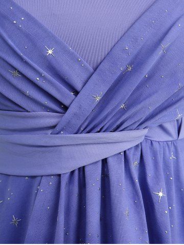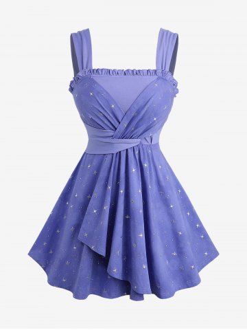 Débardeur grande taille à volants froncés et ourlet tulipe avec imprimé étoile argenté - Bleu Clair - Bleu Clair