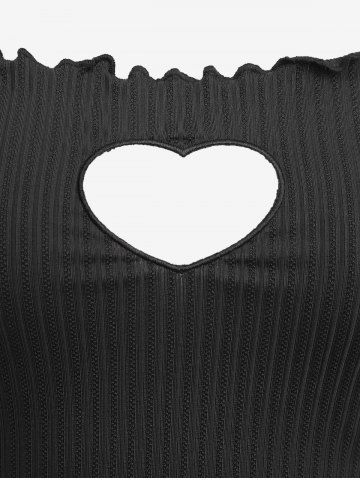 Haut à Bretelle Texturé Cœur Evidé sans Dos de Grande Taille - Noir - Noir