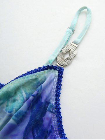 Haut caraco grande taille à imprimé tie-dye et à volants floraux - Bleu Profond - M | Us 10