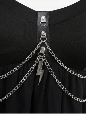 Plus Size Chains Lace Up Grommets Mesh Layered Tank Top - Noir - Noir