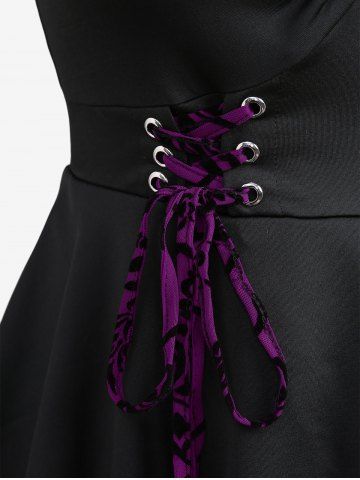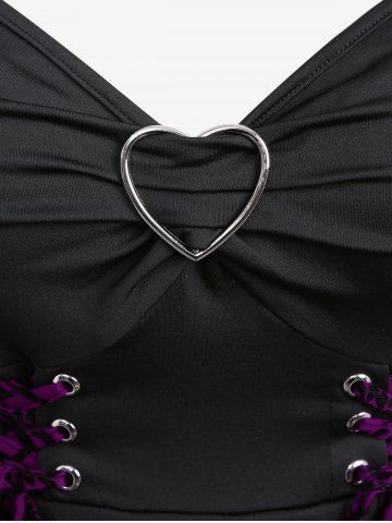 Plus Size Floral Flocking Tulip Hem Layered Ruffles Lace Up Ruched Heart Buckles Tank Top - Violet Prune - 5x | Us 30-32