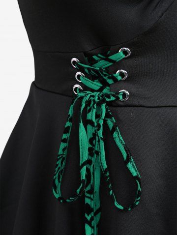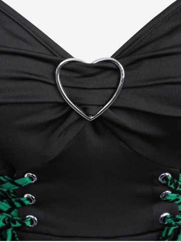 Plus Size Floral Flocking Tulip Hem Layered Ruffles Lace Up Ruched Heart Buckles Tank Top - Vert - Vert