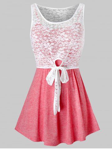 B*****b5Plus Size Lace Panel See Thru Empire Waist Tunic Tank TopColor: WATERMELON PINK Size: 4XThis is a very beautiful summer top, the lace is an added touch to this top. I ordered a 4X in this and was sent a 2X in a 4X bag! It is tight in the bust and the shoulder so I'll give it to a friend. This top is slightly see through. The material is soft and comfortable, shipped fast and packaged nicely.