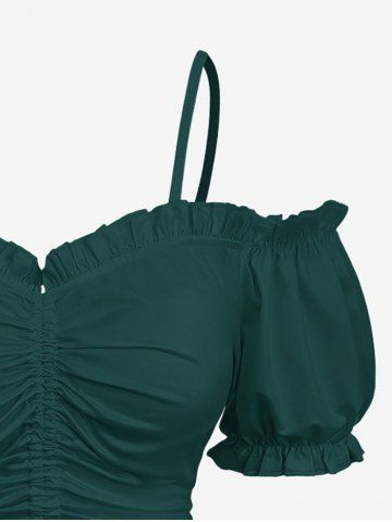 Débardeur à épaules dénudées, froncé et froncé, grande taille - Vert Profond - 5x