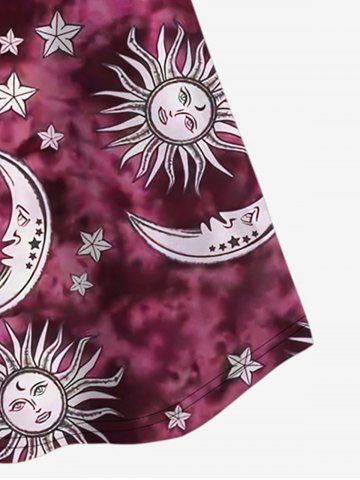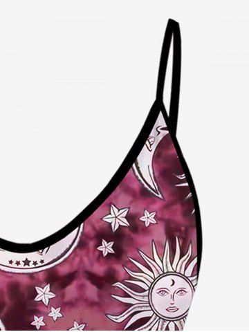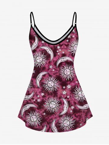 Débardeur Côtelé 3D Soleil et Lune Imprimés à Epaule Dénudée de Grande Taille - Rouge Foncé - 1x | Us 14-16