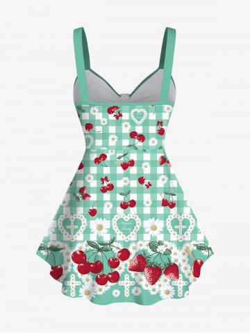 Débardeurs Graphiques > Débardeur Croisé Cerise Marguerite Imprimée à Carreaux sans Dos de Grande Taille