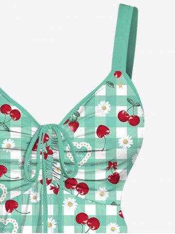 Débardeur Croisé Cerise Marguerite Imprimée à Carreaux sans Dos de Grande Taille - Vert Clair - Vert Clair