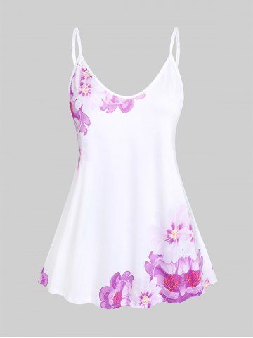 Débardeur Fluide Curve à Fleurs de Cottagecore de Grande Taille - Blanc - Blanc
