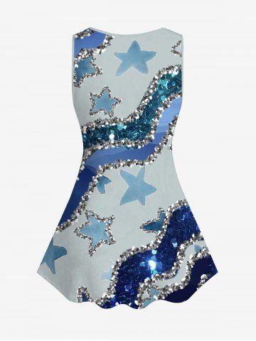 Débardeurs Graphiques > Débardeur grande taille à paillettes scintillantes, rayures étoilées et imprimé dentelle