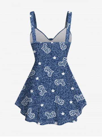 Débardeur Sanglé Etoile Cœur Imprimé de Grande Taille en Denim - Bleu-gris - 4x
