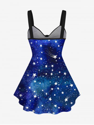 Débardeur Sanglé Etoile Galaxie Imprimée de Grande Taille à Paillettes - Bleu Profond - 6x
