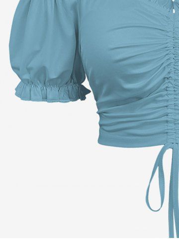 Haut uni à épaules dénudées et manches bouffantes grande taille - Bleu-gris - 4x