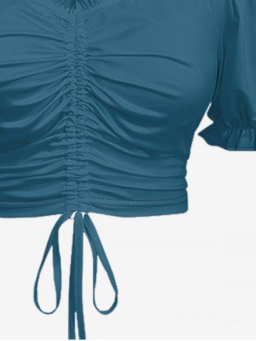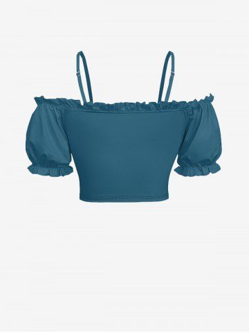 Plus Size Cinched Ruched Ruffles Cold Shoulder Cami Top - Paon Bleu - 2x