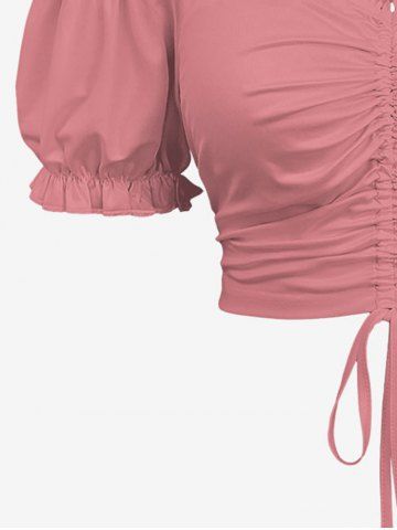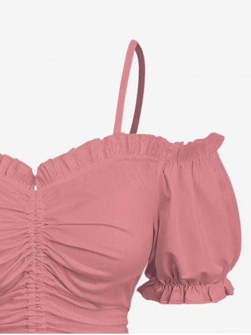 Plus Size Cold Shoulder Puff Sleeve Solid Cinched Top - Rose Clair - Rose Léger