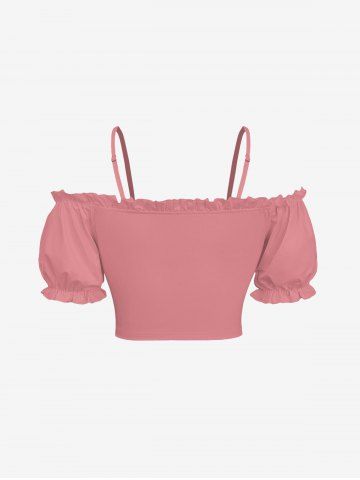 Débardeurs Graphiques > Plus Size Cold Shoulder Puff Sleeve Solid Cinched Top