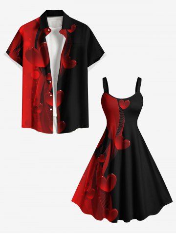 Ensemble assorti grande taille pour couples, imprimé cœur ombré et colorblock, idéal pour la Saint-Valentin - Rouge - Rouge