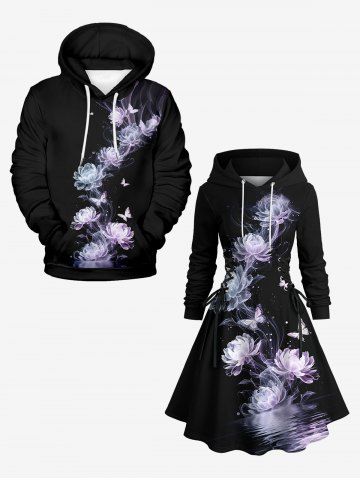 Ensemble Assorti Couple > Ensemble assorti grande taille pour couples, imprimé roses et papillons, idéal pour la Saint-Valentin