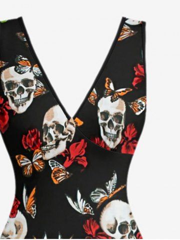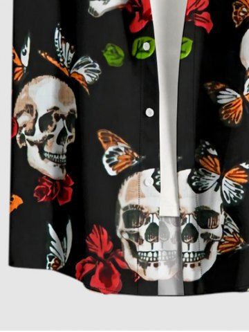 Ensemble assorti pour couples avec imprimé têtes de mort, papillons et fleurs - Noir - Noir