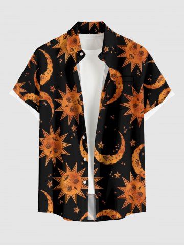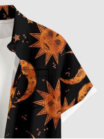 Ensemble de plage hawaïen assorti grande taille à imprimé soleil, lune et étoiles pour couples - Noir - Noir