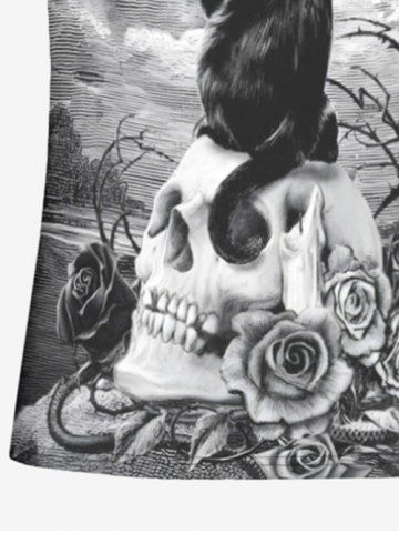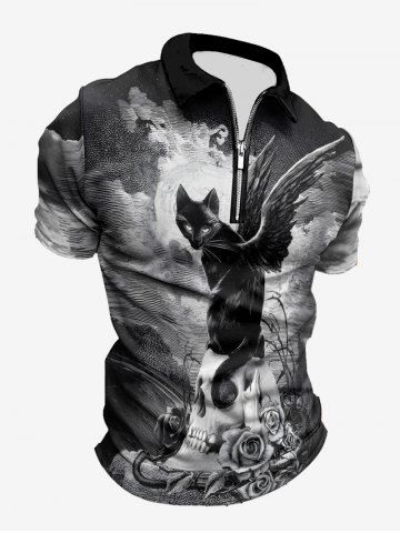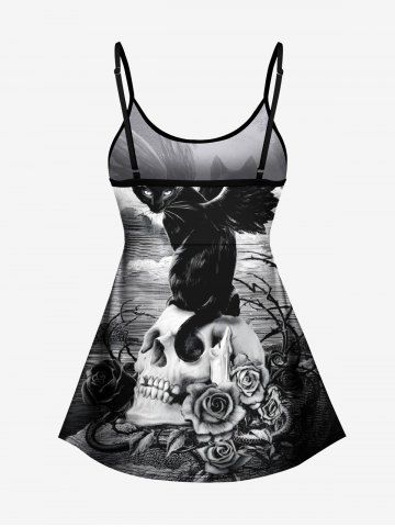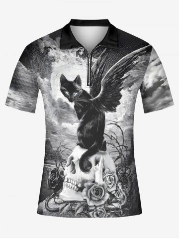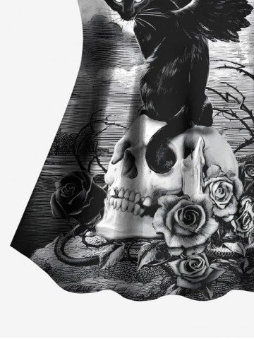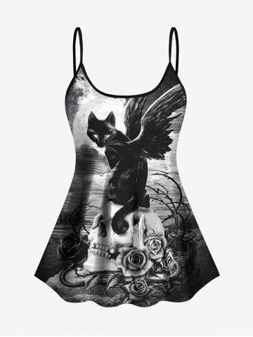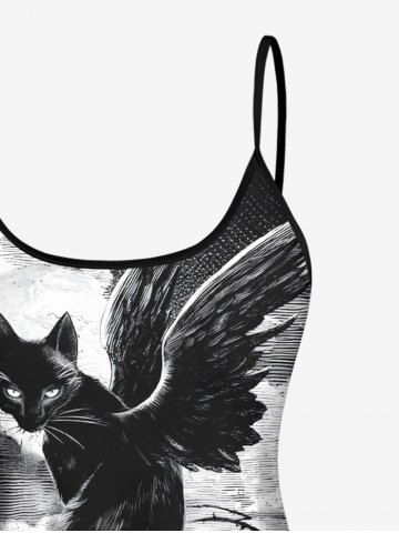 Maillot de Bain 1 Pièce Imprimé Chat et Nuage Floral Grande Taille - Noir - Noir