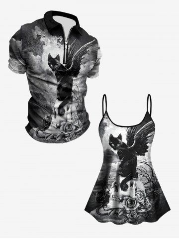 Ensemble Assorti Couple > Maillot de Bain 1 Pièce Imprimé Chat et Nuage Floral Grande Taille