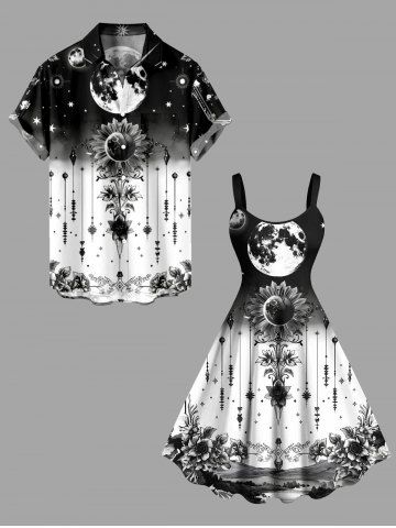 Ensemble Assorti Couple> Tenue assortie grande taille à imprimé ombré de tournesols et d'étoiles pour couples