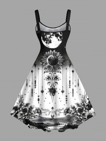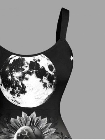 Tenue assortie grande taille à imprimé ombré de tournesols et d'étoiles pour couples - Noir - Noir
