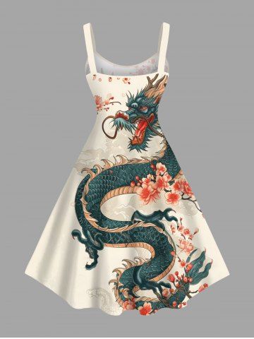 Tenue assortie grande taille à imprimé dragon et branches fleuries pour couples - Café Lumière