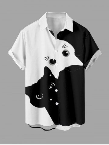 Two Tone Cat Print Plus Size Matching Outfit For Couples - Blanc - Blanc