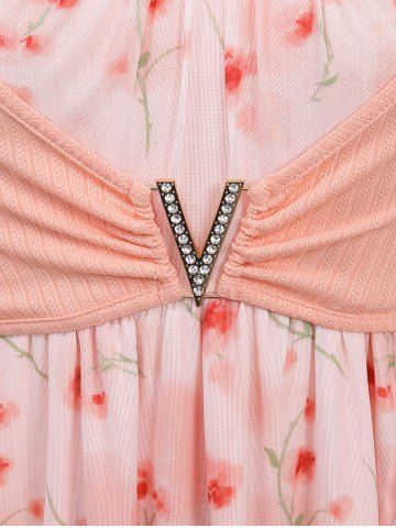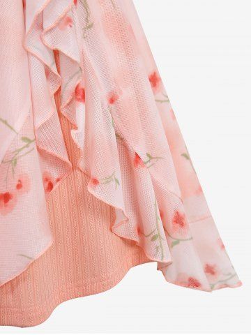 Chemisier asymétrique 2 en 1 à imprimé floral et ourlet tulipe texturé, pantalon évasé à pompons festonnés, tenue grande taille - Orange Clair