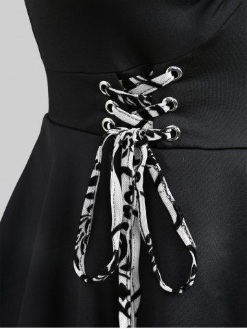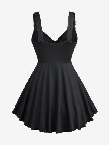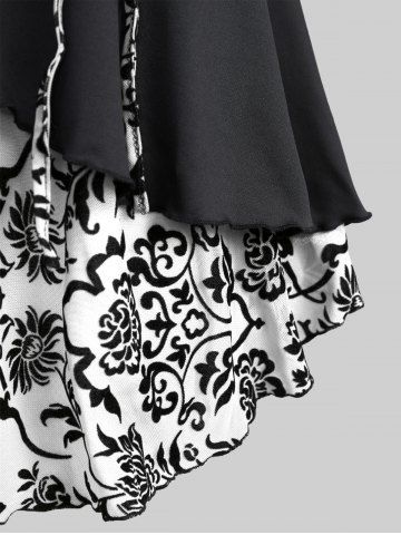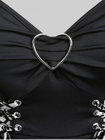 Débardeur à Lacets et Legging à Bordure Tulipe avec Appliques Florales Grande-Taille - Noir - Noir