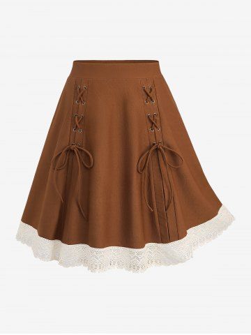 C*****r5Plus Size Lace Up Crochet Hollow Out Ethnic Trim Patchwork A Line SkirtColor: COFFEE Size: 3X | US 22-24I really love the skirt. It fits perfectly and it’s very flattering.