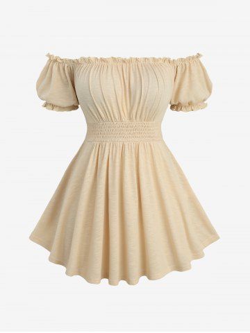 Haut froncé à taille élastique et leggings en denim ombré à lacets 3D, tenue grande taille - Beige - Ral1001beige