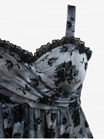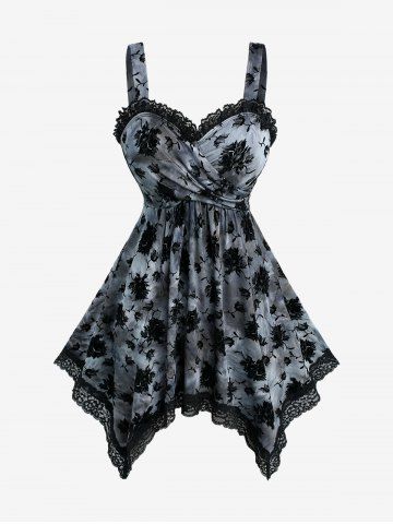 m*****r5Plus Size Floral Flocking Tie Dye Lace Trim Handkerchief Crossover Tank TopColor: BLACK Size: 3X | US 22-24True to size,looks how it does online here