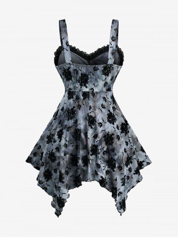 Tenue grande taille avec haut mouchoir croisé tie-dye à fleurs et pantalon évasé en dentelle - Noir - Noir