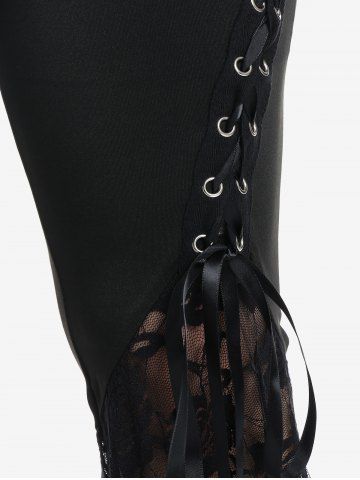 Plus Size Lace Panel Pull On Flare Pants with Lace-up