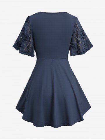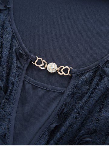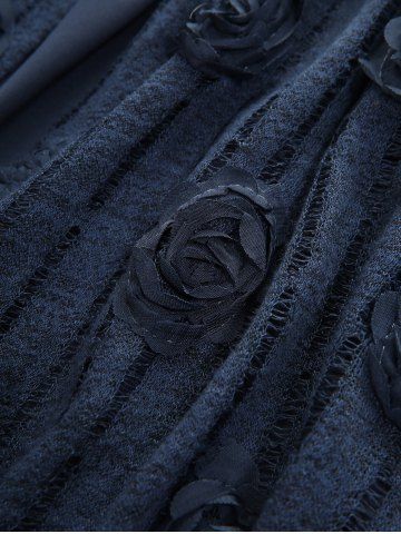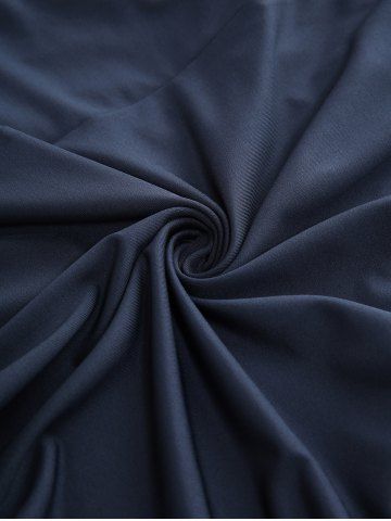 Maillot de Bain Ajouré Asymétrique à Rose et Pantalon Évasé Grande Taille - Bleu Profond