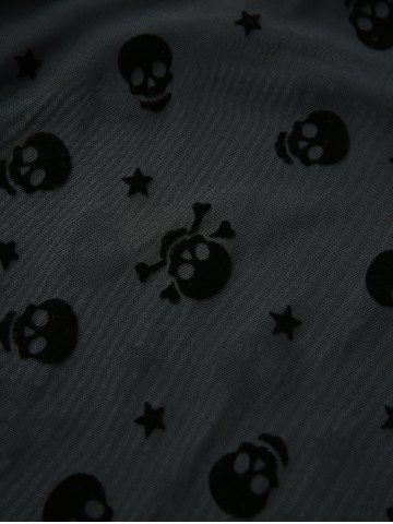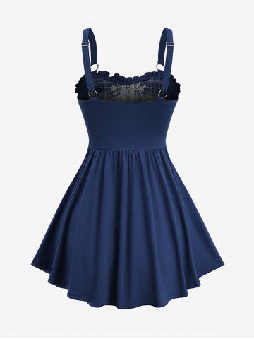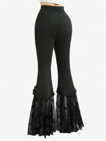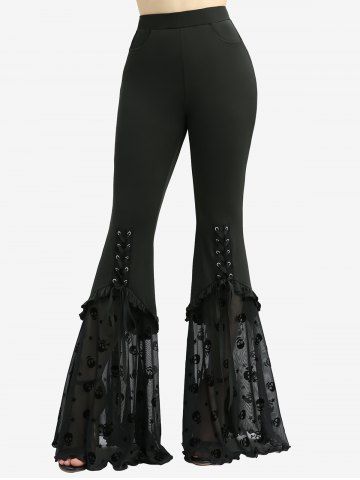 Ensemble d'été De Grande Taille> Plaid Print Flower Embroidery Lace Up Top and Skull Stars Flocking Pocket Flare Pants Outfit