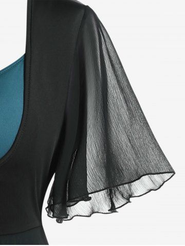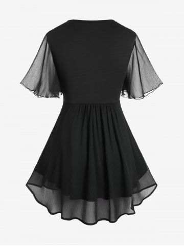 c*****45Plus Size Flutter Sleeves Twist Colorblock 2 in 1 TeeColor: BLACK Size: 3X | US 22-24beautiful fabric very lightweight very soft very feminine loving the colors I absolutely adore the length especially for heavier set women like myself helps to give shape very attractive very happy with this blouse I love the detail and the soft sheer material.
