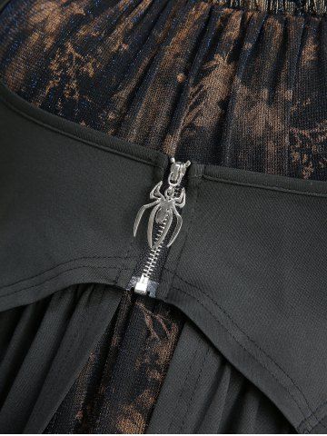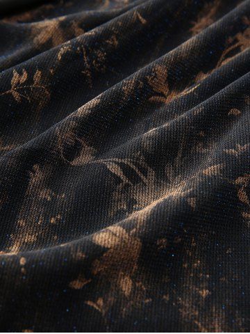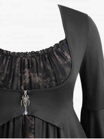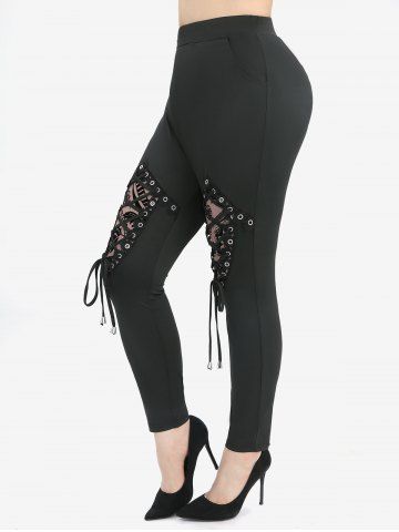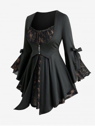 Ensemble 2 en 1 : haut à imprimé floral avec nœud papillon et manches évasées, et legging floqué à lacets (grandes tailles). - Noir - Noir