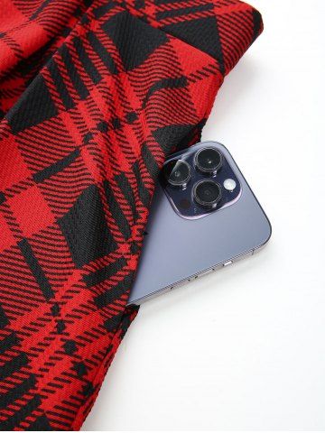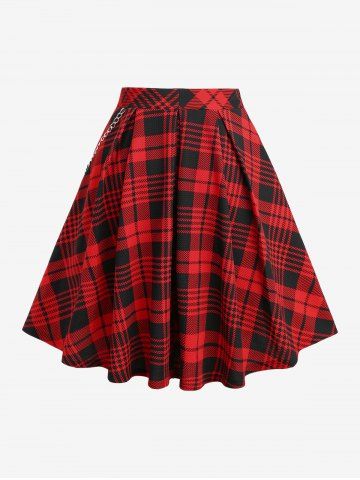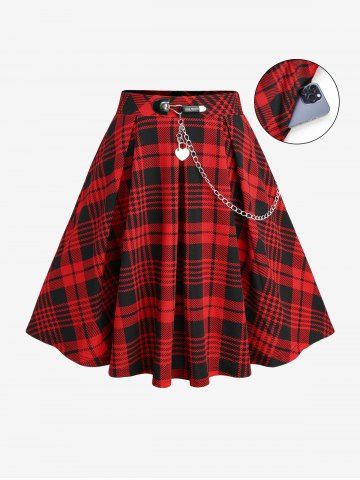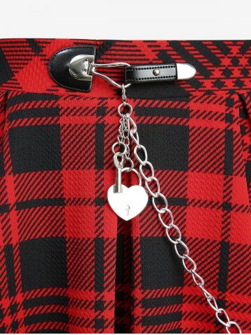 Ensembles Assortis> Ensemble composé d'un haut à bretelles en velours gaufré et d'une jupe trapèze à poche chaîne en forme de cœur à carreaux